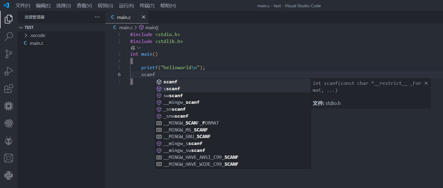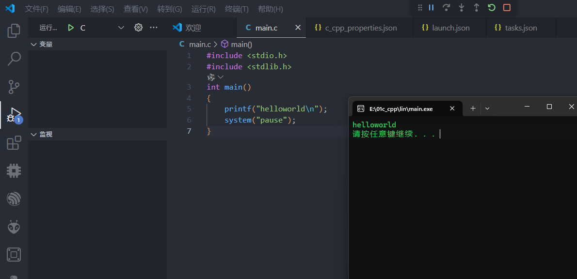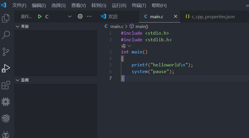这个时候,我们就可以看到有了代码提示,也可以检测到头文件了。这里的system("pause")是为了让终端停留,而不是一闪而过