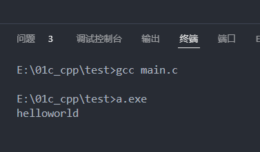 然后在终端输入a.exe,可以看到,程序确实运行了。这也充分显示了编辑器、编译器、集成开发环境的区别。