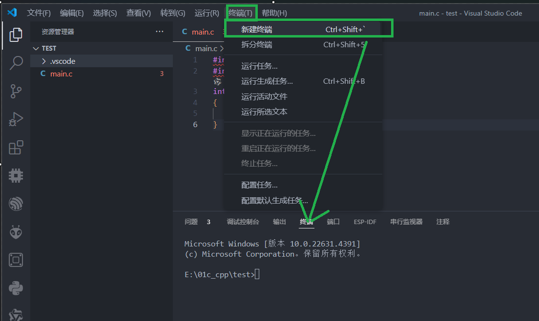 但是,即使这样,我们依然可以使用命令行来调用gcc编译它,打开内置终端,它和系统自带的终端相同,你可以使用PowerShell或cmd等