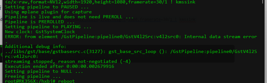 并且执行gst-launch-1.0 v4l2src device=/dev/video0 ! video/x-raw,format=NV12,width=640,height=480,framerate=30/1 ! kmssink