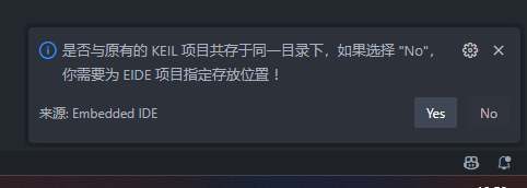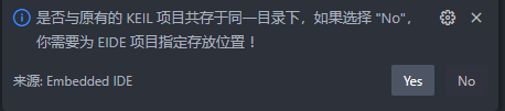 为了将EIDE工程与Keil工程隔离开,选择“NO”