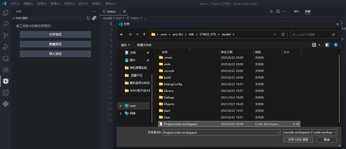 导入过的项目会建立EIDE项目文件和工作区文件。